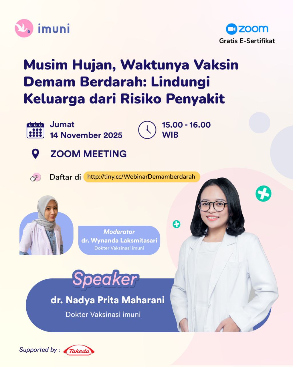 YUK IKUTI WEBINAR “Musim Hujan, Waktunya Vaksin Demam Berdarah: Lindungi Keluarga dari Risiko Penyakit”