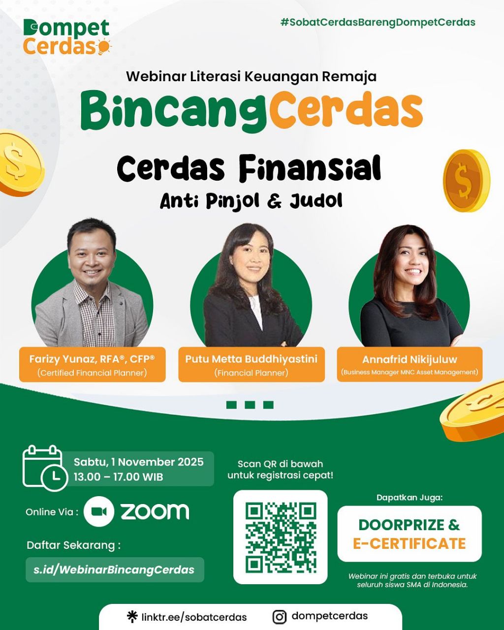 Lewat Webinar BincangCerdas, kamu bakal belajar gimana cara ngatur uang dengan bijak, hindari utang berisiko, dan bangun kebiasaan finansial sehat sejak dini. 💪