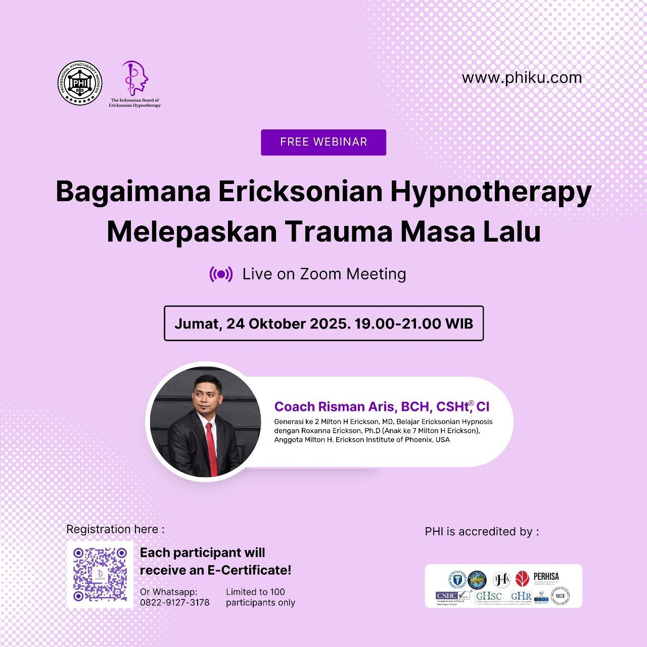Informasi lengkap: klik: https://www.rismanaris.com/webinar-ericksonian-hypnosis/