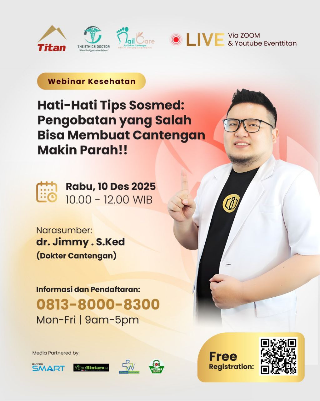 Cantengan seringkali dianggap sebagai masalah kecil, namun dapat menjadi sumber ketidaknyamanan yang signifikan dan bahkan mengganggu aktivitas sehari-hari. Tidak hanya menyebabkan rasa sakit dan pembengkakan, tapi juga meningkatkan resiko infeksi jika tidak ditangani dengan benar. Tidak perlu khawatir ya, kali ini Titan center bersama Dr. Jimmy .S.Ked akan membahas bersama topik ini dengan tema :