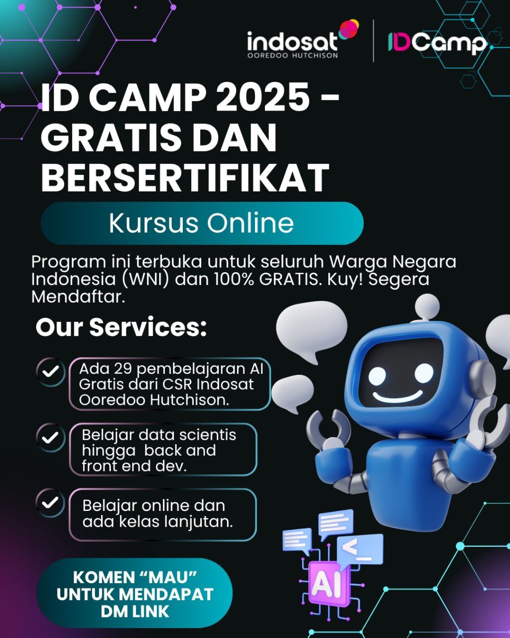 #IDCamp2025 #bisakarenabiasa #CSRIndosat #KursusGratis #BelajarAI #DataScience #FrontEnd #BackEnd #FlutterDev #AndroidDev #MachineLearning #GenAI #DigitalTalentIndonesia #TechForGood #AIEngineer #BelajarOnline