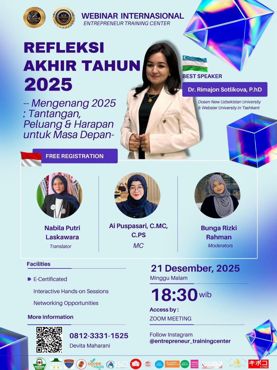 – Dr. Rimajon Sotlikova, P.hD ( Dosen New Uzbekistan University & Webster University )